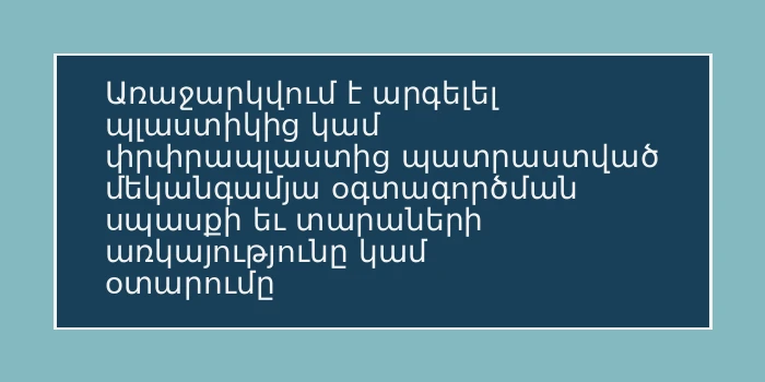 Առաջարկվում է արգելել պլաստիկից կամ փրփրապլաստից պատրաստված մեկանգամյա օգտագործման սպասքի եւ տարաների առկայությունը կամ օտարումը