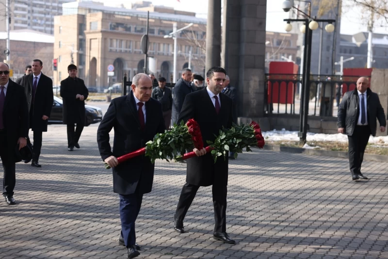 ՀՀ ԱԺ նախագահ Ալեն Սիմոնյանը եւ ՀՀ վարչապետ Նիկոլ Փաշինյանը ծաղիկներ են խոնարհել Երեւանի Գրիգոր Լուսավորչի փողոցին հարակից այգում կանգնեցված...
