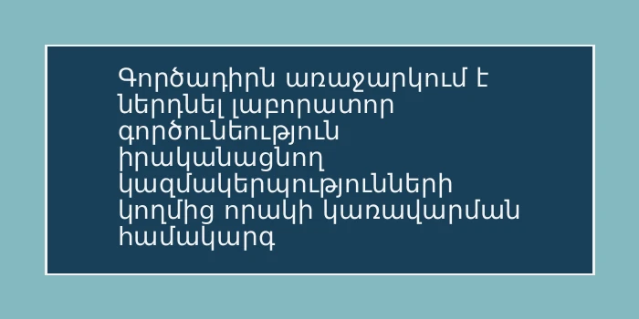 Գործադիրն առաջարկում է ներդնել լաբորատոր գործունեություն իրականացնող կազմակերպությունների կողմից որակի կառավարման համակարգ