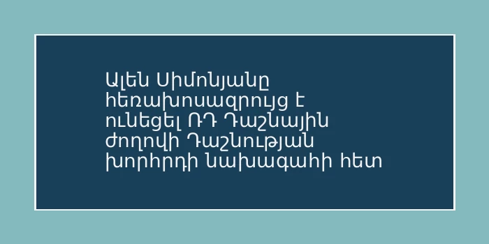 ՀՀ ԱԺ նախագահ Ալեն Սիմոնյանը հեռախոսազրույց է ունեցել ՌԴ Դաշնային ժողովի Դաշնության խորհրդի նախագահ Վալենտինա Մատվիենկոյի հետ: Զրուցակիցները...
