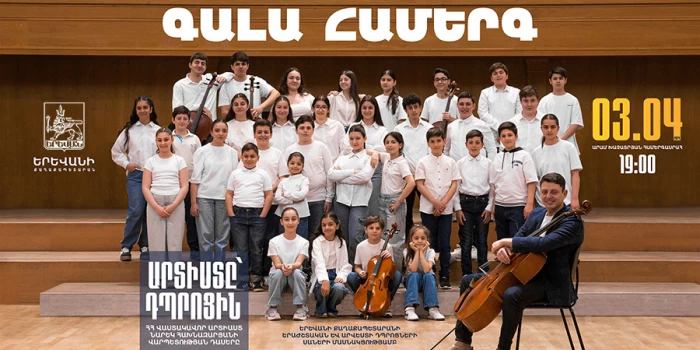 Երևանի քաղաքապետարանի նախաձեռնությամբ իրականացվող «Արտիստը՝ դպրոցին» ծրագրի եզրափակիչ գալահամերգը կկայանա ս.թ. ապրիլի 3-ին՝ ժամը 19:00-ին, «...
