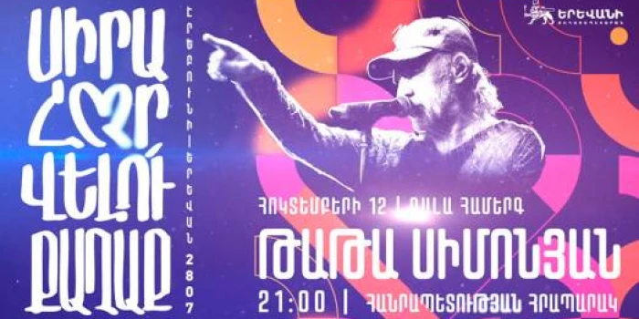 Հոկտեմբերի 12-ին՝ «Էրեբունի-Երևան 2807» տոնակատարության շրջանակում Շառլ Ազնավուրի հրապարակում ժամը 13:00-17:00-ն կկայանա էստրադային համերգ։