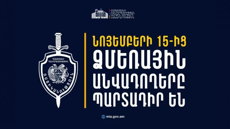 Հարգելի՛ վարորդներ,այսօրվանից առանց համապատասխան ձմեռային անվադողերի տրանսպորտային միջոցների շահագործումը կարգելվի։ Մասնավորապես, տրանսպորտա...