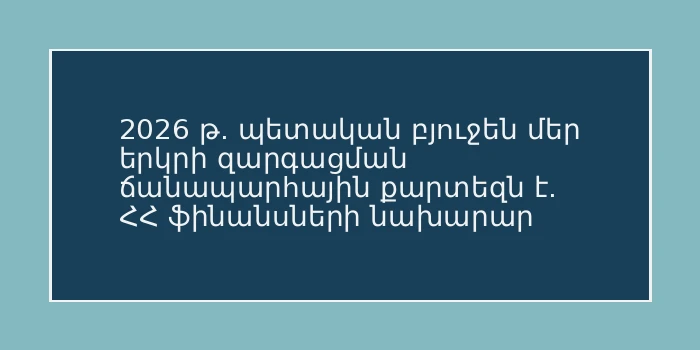 2026 թ. պետական բյուջեն մեր երկրի զարգացման ճանապարհային քարտեզն է. ՀՀ ֆինանսների նախարար
