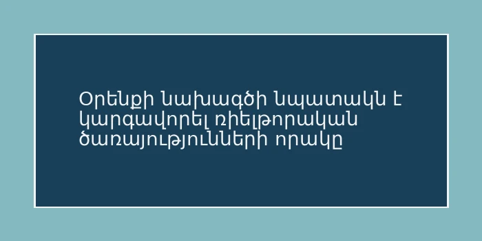 Օրենքի նախագծի նպատակն է կարգավորել ռիելթորական ծառայությունների որակը