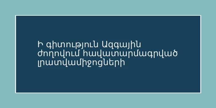 Ի գիտություն Ազգային ժողովում հավատարմագրված լրատվամիջոցների