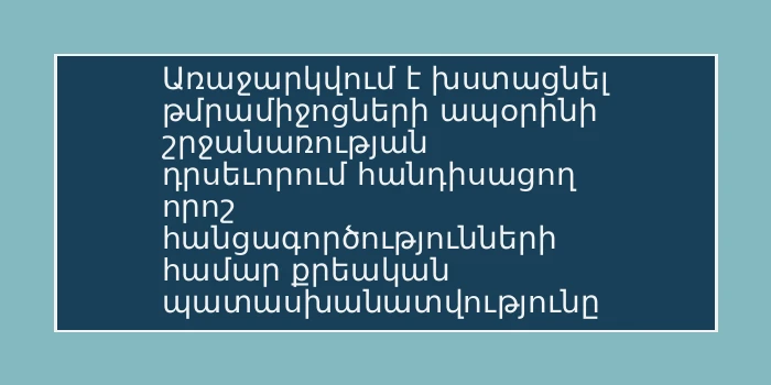 Առաջարկվում է խստացնել թմրամիջոցների ապօրինի շրջանառության դրսեւորում հանդիսացող որոշ հանցագործությունների համար քրեական պատասխանատվությունը