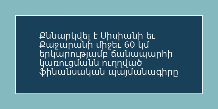 Քննարկվել է Սիսիանի եւ Քաջարանի միջեւ 60 կմ երկարությամբ ճանապարհի կառուցմանն ուղղված ֆինանսական պայմանագիրը
