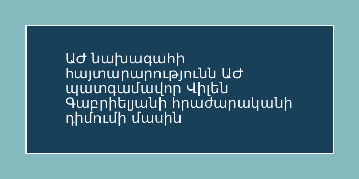 ԱԺ նախագահի հայտարարությունն ԱԺ պատգամավոր Վիլեն Գաբրիելյանի հրաժարականի դիմումի մասին