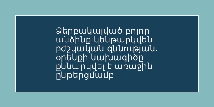 Ձերբակալված բոլոր անձինք կենթարկվեն բժշկական զննության. օրենքի նախագիծը քննարկվել է առաջին ընթերցմամբ