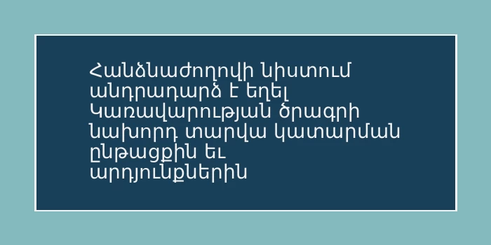 Հանձնաժողովի նիստում անդրադարձ է եղել Կառավարության ծրագրի նախորդ տարվա կատարման ընթացքին եւ արդյունքներին