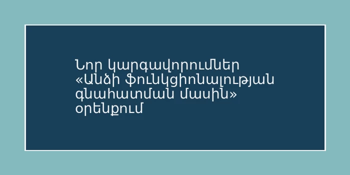 Նոր կարգավորումներ «Անձի ֆունկցիոնալության գնահատման մասին» օրենքում