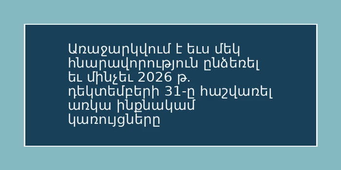 Առաջարկվում է եւս մեկ հնարավորություն ընձեռել եւ մինչեւ 2026 թ. դեկտեմբերի 31-ը հաշվառել առկա ինքնակամ կառույցները