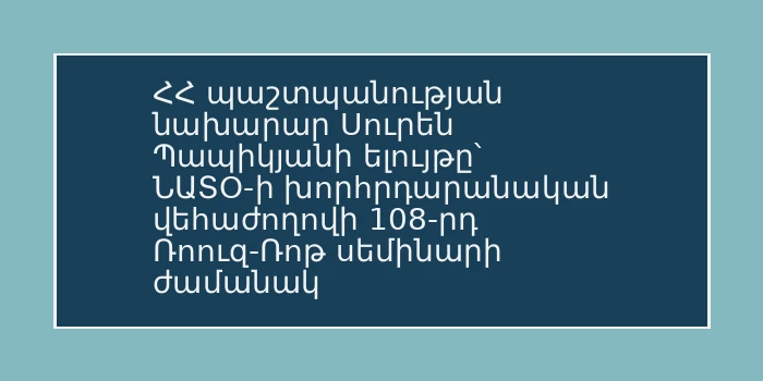 Սուրեն Պապիկյանը մասնակցել է ՆԱՏՕ-ի խորհրդարանական վեհաժողովի 108-րդ Ռոուզ-Ռոթ սեմինարին
