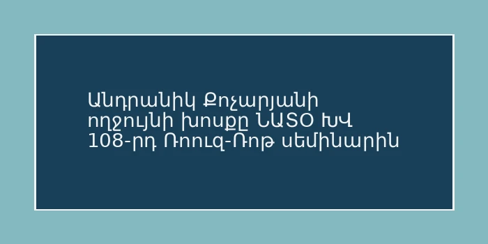 Անդրանիկ Քոչարյանի ողջույնի խոսքը ՆԱՏՕ ԽՎ 108-րդ Ռոուզ-Ռոթ սեմինարին
