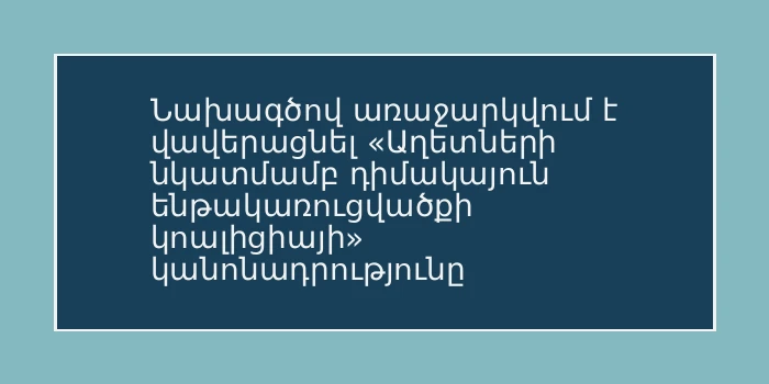 Նախագծով առաջարկվում է վավերացնել «Աղետների նկատմամբ դիմակայուն ենթակառուցվածքի կոալիցիայի» կանոնադրությունը