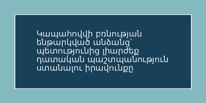 Կապահովվի բռնության ենթարկված անձանց՝ պետությունից լիարժեք դատական պաշտպանություն ստանալու իրավունքը