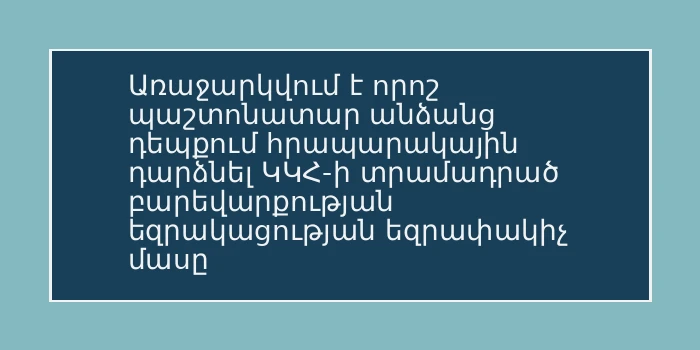 Մի խումբ պաշտոնատար անձանց նշանակման եւ առաջխաղացման գործընթացում առաջարկվում է նախատեսել այնպիսի կարգավորումներ, որոնցով հնարավոր կլինի հրա...
