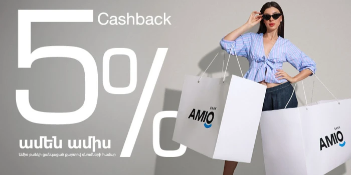 Դարձեք Ամիօ քարտապան, ստացեք 5% քեշբեք ամեն ամիս .banks.am