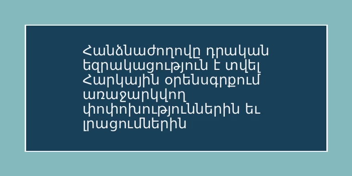 Հանձնաժողովը դրական եզրակացություն է տվել Հարկային օրենսգրքում առաջարկվող փոփոխություններին եւ լրացումներին
