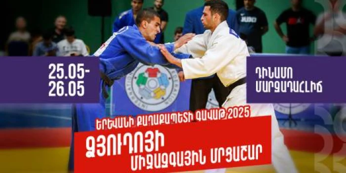 Մայիսի 25-26-ը «Դինամո» մարզադահլիճում կկայանա «Երևանի քաղաքապետի գավաթ 2025» ձյուդոյի միջազգային մրցաշարը։ Սկիզբը` ժամը 11:00-ին: Մուտքն ազ...