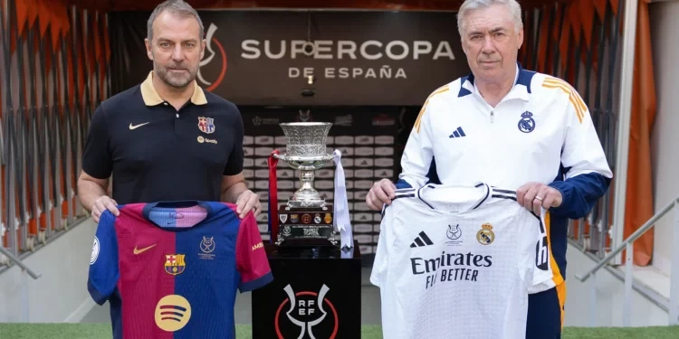 Մադրիդի «Ռեալը» և «Բարսելոնան» երրորդ անգամ անընդմեջ հանդիպում են Իսպանիայի Սուպերգավաթի եզրափակիչում։ Հունվարի 12, Սաուդյան Արաբիա, Ջիդա Իս...
