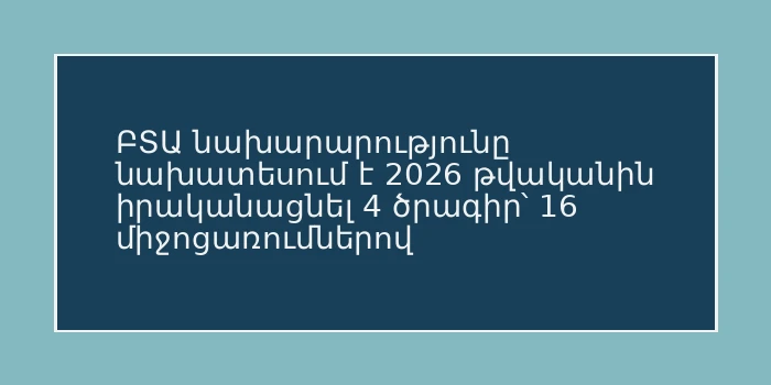 ԲՏԱ նախարարությունը նախատեսում է 2026 թվականին իրականացնել 4 ծրագիր՝ 16 միջոցառումներով