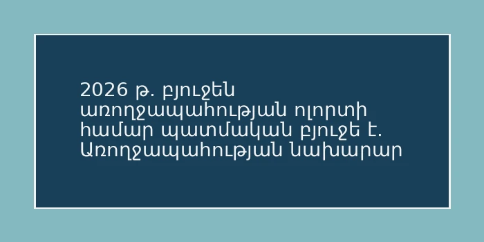 2026 թվականին Առողջապահության նախարարությանը նախատեսվում է հատկացնել 210 մլրդ 911 մլն դրամ: Այն 2025 թվականի համեմատ ավելի է 44 մլրդ 313 մլն...