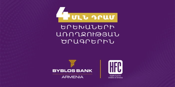 Բիբլոս Բանկ Արմենիան 4 միլիոն դրամ է նվիրաբերել Հայաստանի երեխաների առողջության հիմնադրամին՝ աջակցելու հիմնադրամի՝ առողջական խնդիրներ ունեցո...