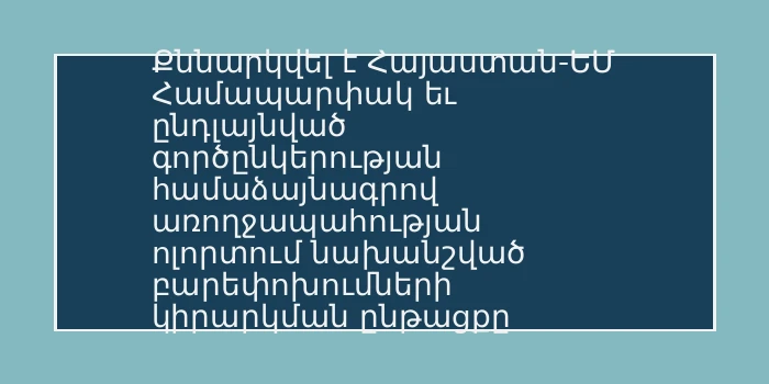Քննարկվել է Հայաստան-ԵՄ Համապարփակ եւ ընդլայնված գործընկերության համաձայնագրով առողջապահության ոլորտում նախանշված բարեփոխումների կիրարկման ընթացքը