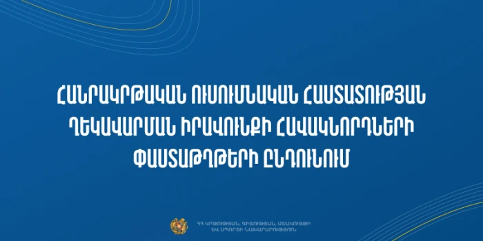 ԿԳՄՍ նախարար Ժաննա Անդրեասյանը հրաման է ստորագրել հանրակրթական ուսումնական հաստատության ղեկավարման իրավունք (հավաստագիր) ստանալու համար հավա...