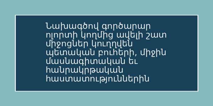 Նախագծով գործարար ոլորտի կողմից ավելի շատ միջոցներ կուղղվեն պետական բուհերի, միջին մասնագիտական եւ հանրակրթական հաստատություններին