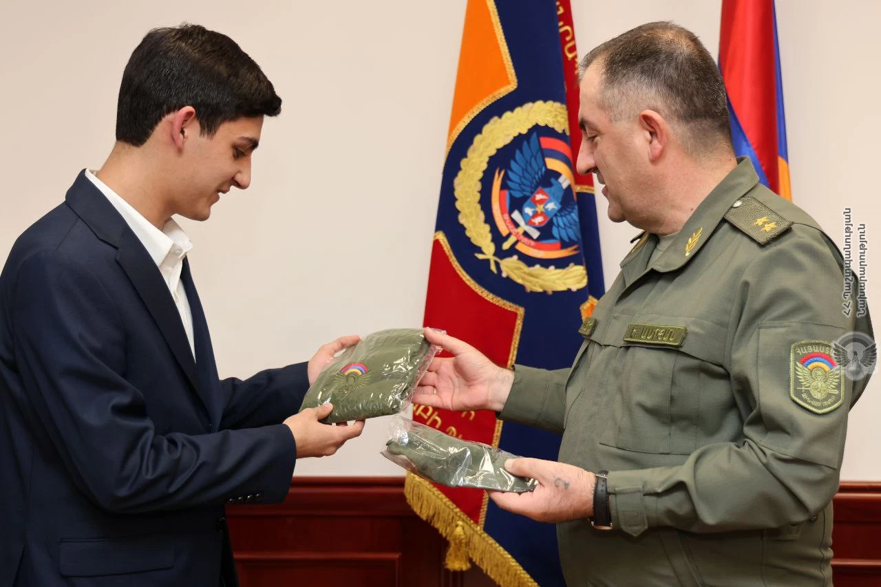 Գեներալ-լեյտենանտ Էդվարդ Ասրյանն ընդունել է Երևանի թիվ 46 ավագ դպրոցի 10-րդ դասարանի աշակերտ Արման Դալլաքյանին