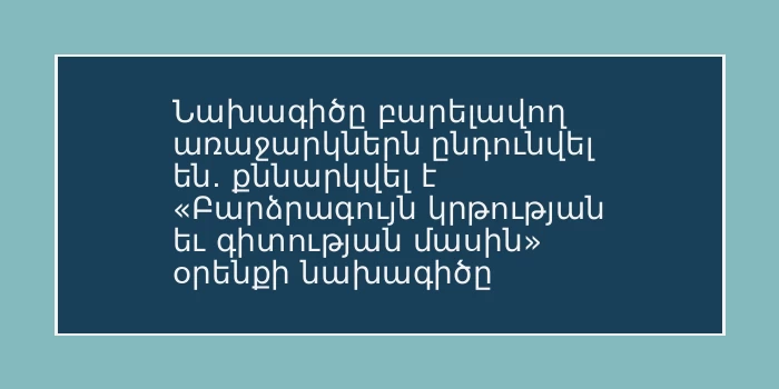 Նախագիծը բարելավող առաջարկներն ընդունվել են. քննարկվել է «Բարձրագույն կրթության եւ գիտության մասին» օրենքի նախագիծը