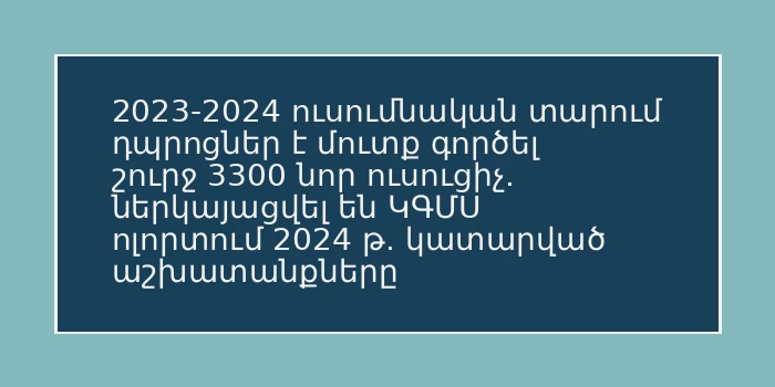 2023-2024 ուսումնական տարում դպրոցներ է մուտք գործել շուրջ 3300 նոր ուսուցիչ. ներկայացվել են ԿԳՄՍ ոլորտում 2024 թ. կատարված աշխատանքները