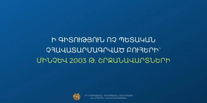 Ի գիտություն ոչ պետական չհավատարմագրված բուհերի՝ մինչև 2003 թ. շրջանավարտների